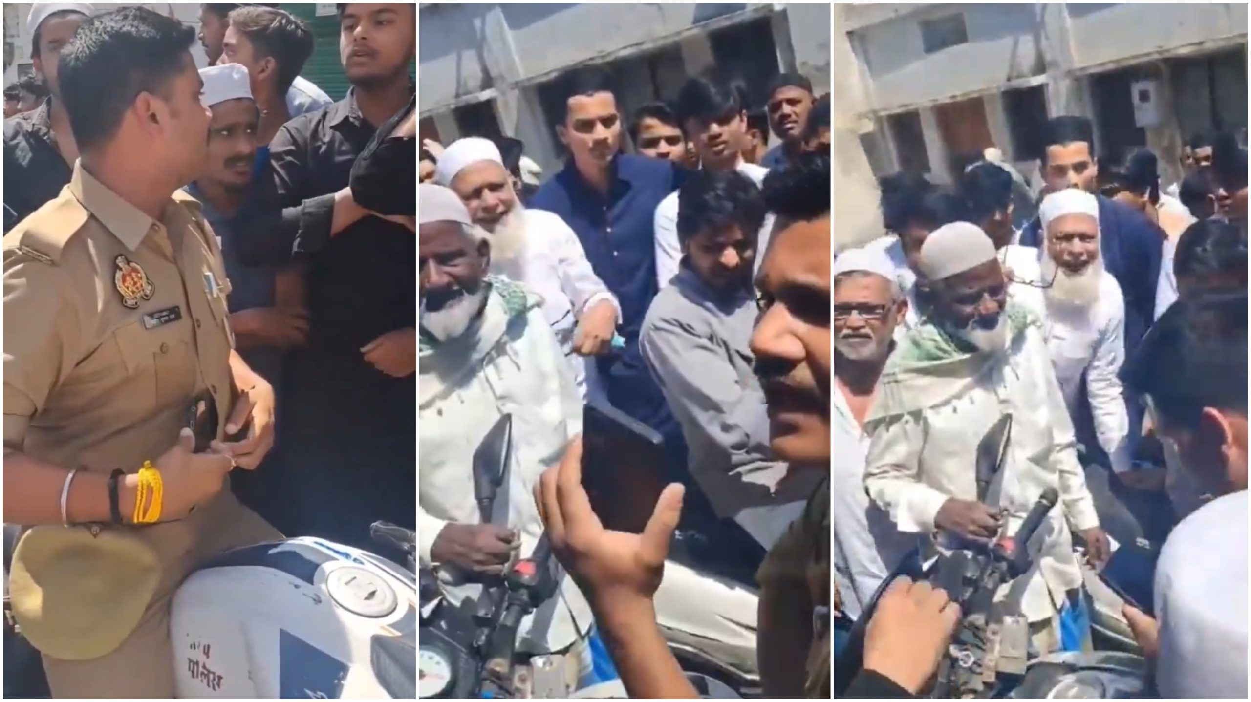 Des vidéos circulant sur les réseaux sociaux montrent le policier sur son vélo de patrouille entouré de fidèles musulmans en colère. Ils l'ont accusé de « gunda gardi » (hooliganisme) et de « dadagiri » (intimidation), se demandant comment il pouvait entrer dans un lieu de culte sans autorisation pendant les prières en cours.